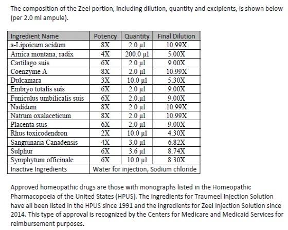| What is Traumeel? Traumeel is a special blend of natural plant & mineral extracts, which was developed by Dr Hans-Heinrich Reckeweg, a German physician, in the 1930s, to treat musculoskeletal injuries & inflammation. 60 years & is now available in over 50 countries, including the USA. Traumeel, in combination with Zeel, was found to be effective in treating moderate knee OA pain. |